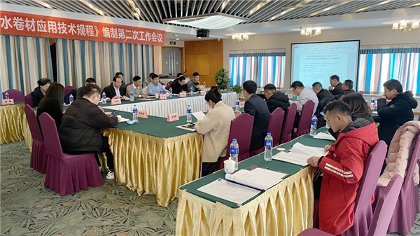 ? ??主編單位蘇州中材非金屬礦工業設計研究院有限公司、江蘇凱倫建材股份有限公司,參編單位宏源防水科技集團有限公司、鑫寶防水材料股份有限公司、上海豫宏(金湖)防水科技有限公司、菏澤市魯班新型建材有限公司、北京東方雨虹防水技術股份有限公司、浙江春明防水建材有限公司、安徽東方佳信建材科技有限公司、北京市建國偉業防水材料有限公司、阿爾法新材料江蘇有限公司、三棵樹涂料股份有限公司等共23家單位30多名代表參加會議。
