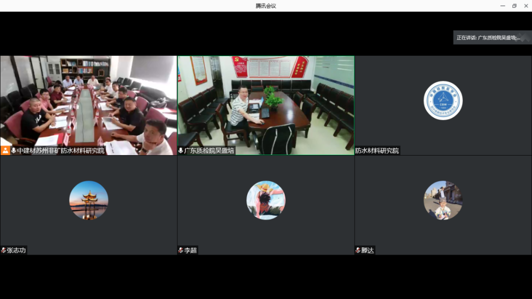 主編單位蘇州中材非金屬礦工業(yè)設計研究院有限公司、廣東合勝實業(yè)股份有限公司,參會單位江蘇凱倫建材股份有限公司、菏澤市魯班新型建材有限公司、重慶斯格爾實業(yè)有限公司、江西萬合防水科技有限公司、四川省威盾匠心建設有限公司、常州市盛宇防水材料科技有限公司、安徽東方佳信建材科技有限公司、江蘇宏源中孚防水材料有限公司,共10家單位15名代表出席線下會議;廣東產(chǎn)品質量監(jiān)督檢驗研究院、宏源防水科技集團有限公司、三棵樹涂料股份有限公司、遼寧九鼎宏泰防水科技有限公司,共4家單位4名代表參與線上視頻會議。
